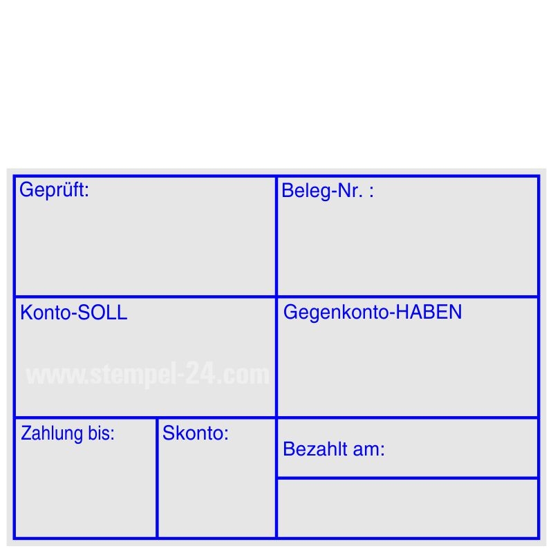 Textplatte: Geprüft, Beleg-Nr., Konto-Soll, Gegenkonto Haben, Zahlung bis, Skonto, Bezahlt am.