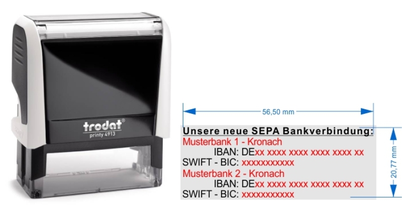Trodat Printy 4913 IBAN SWIFT Stempel für 2. Bankverbindungen.