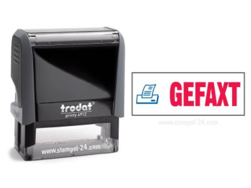 Trodat Office Printy mit Text GEFAXT roter Schriftzug und blauen Symbol