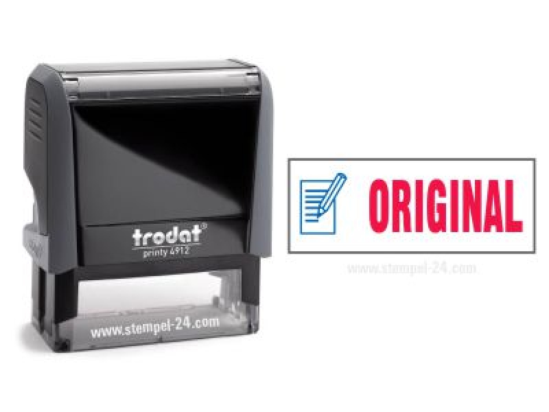 Trodat Office Printy mit Text ORIGINAL roter Schriftzug und blauen Symbol