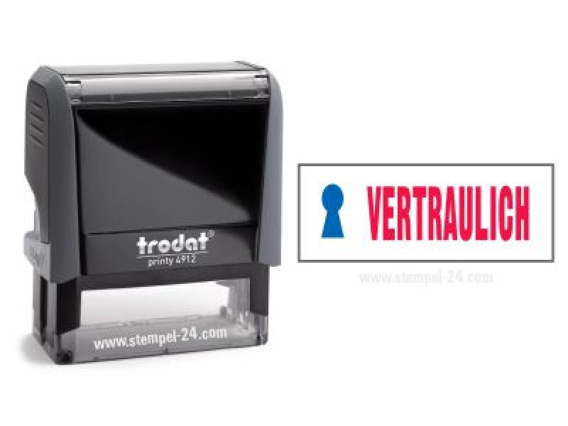 Trodat Office Printy 4912 VERTRAULICH mit roten Schriftzug und blauen Symbol